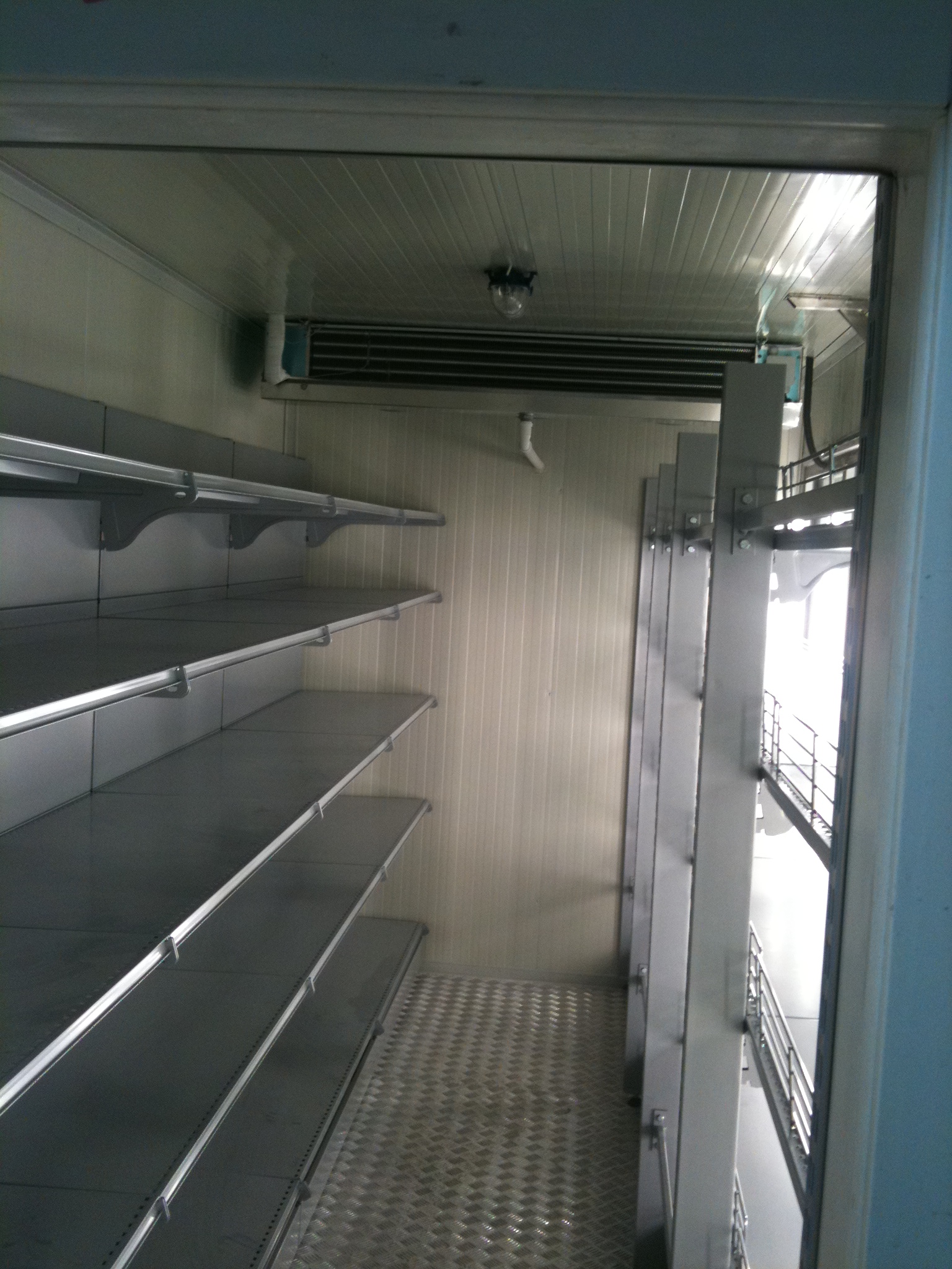 Двери для холодильных камер-витрин изготовлены из аллюминиевого профиля. Двери бывают лево- и правостороннего открывания. По желанию клиента может быть установлена светодиодная подстветка. Распашные двери оснащены блокиратором, который не дает двери открываться более чем на 90°.