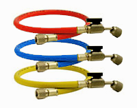 Шланги заправочные служат для обслуживания холодильных установок и систем кондиционирования воздуха и являются неотъемлемым инструментом каждого специалиста в этой области. Для удобства эксплуатации заправочные шланги изготавливают в 3-ех цветах: желтые, синие и красные. Все три вида обладают одинаковыми характеристиками, отличие заключается только в цветах. Для большей функциональности шланги могут иметь на одном из концов шаровый вентиль и изогнутый наконечник, могут оснащаться депрессорами как с одной, так и с обеих сторон. Кроме того, отличной может быть длина шлангов.